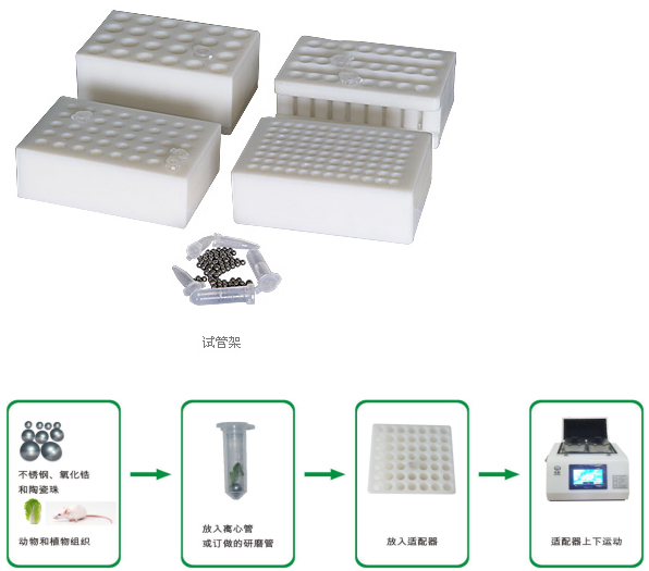 工作原理:機(jī)械振動,通過珠/球等在樣品管內(nèi)震蕩實現(xiàn)樣本的破碎;